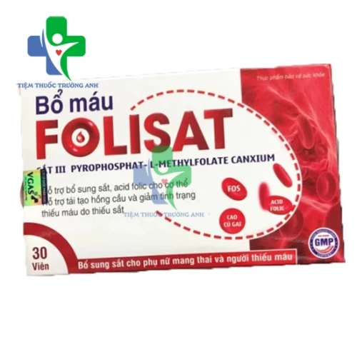 - Sản phẩm Bổ máu Folisat - Hỗ trợ bổ sung sắt và acid folic cho cơ thể hiện đang có bán tại Tiệm thuốc Trường Anh - Nơi cung cấp sỉ/lẻ các loại thuốc uy tín hiện nay. Để nhận được giá tốt nhất hãy liên hệ với chúng tôi qua hotline: 097.189.9466 hoặc nhắn tin vào zalo sđt: 090.179.6388 để được nhân viên báo giá tốt nhất cho bạn.