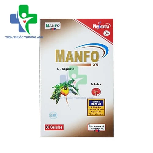 - Sản phẩm Manfo X5 Phytextra - Tăng cường sinh lý nam giới hiện đang có bán tại Tiệm thuốc Trường Anh - Nơi cung cấp sỉ/lẻ các loại thuốc uy tín hiện nay. Để nhận được giá tốt nhất hãy liên hệ với chúng tôi qua hotline: 097.189.9466 hoặc nhắn tin vào zalo sđt: 090.179.6388 để được nhân viên báo giá tốt nhất cho bạn.