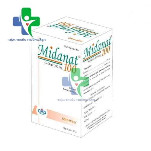 Midanat 100 MD Pharco là thuốc có chứa Cefdinir (thuộc nhóm cephalosporin, có tính chất kìm hãm và diệt khuẩn), vì vậy được dùng cho trường hợp bị viêm tai giữa, viêm amidan, viêm họng, viêm phổi, viêm da,... nhằm điều trị các triệu chứng. Thuốc này mang lại hiệu quả trong các bệnh nhiễm khuẩn nhẹ đến vừa; có dạng bột pha hỗn dịch uống nên cũng thuận lợi khi dùng cho trẻ từ 6 tháng đến 12 tuổi. Theo khuyến cáo chung, bệnh nhân không sử dụng Midanat 100 với thuốc chứa sắt, thuốc kháng acid, cũng như các thuốc chứa probenecid để không ảnh hưởng đến khả năng hấp thụ và tác dụng.