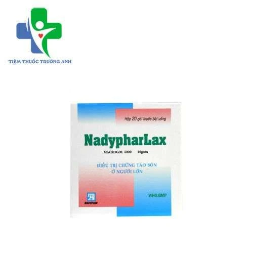 Thuốc Nadypharlax được bào chế dưới dạng thuốc bột uống, gói 10g và được dùng trong điều trị táo bón ở cả người lớn và trẻ em (trẻ trên 8 tuổi). Ngoài ra, Nadypharlax còn được sử dụng để làm rỗng ruột ở người bệnh trước khi tiến hành nội soi đại tràng.