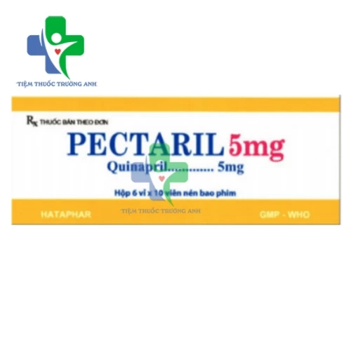 Tăng huyết áp với các dấu hiệu phổ biến như: đau đầu, hoa mắt, ù tai, mất thăng bằng, đau ngực, khó thở, chóng mặt, mắt nhìn mờ,... không chỉ ảnh hưởng đến sức khỏe mà còn làm gián đoạn các hoạt động trong sinh hoạt. Pectaril 5mg Hataphar là một trong những giải pháp điều trị tăng huyết áp hiệu quả. Thuốc có dạng viên nén bao phim, với thành phần chính chứa Quinapril, còn mang lại hiệu quả trong điều trị suy tim sung huyết.